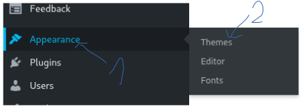 Potřebovali jsme vlízt do levého bočního panelu a vlézt do Appearance (Vzhled) a pak do Themes (Téma)