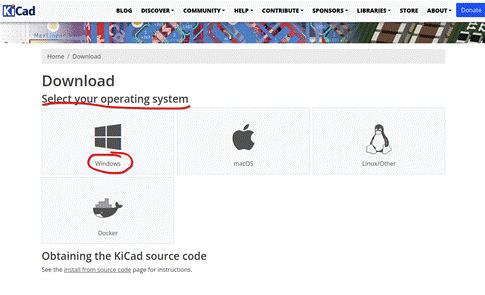 - Nyní vyberte operační systém na kterém jste a na který chcete KiCad nainstalovat. Pro příklad vybereme Windows