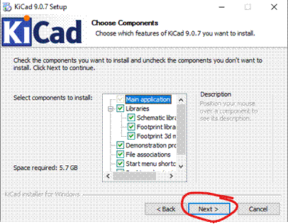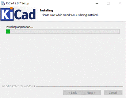 - KiCad se nyní začne instalovat. Počkejte na dokončení instalace což může chvilku trvat.