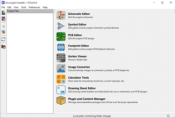 - Dokončete instalaci kliknutím na tlačítko ,,Finish” a pokud jste zaškrtli políčko ,,Launch KiCad”, měl by se KiCad otevřít.