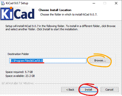 - Zde budete mít možnost změnit složku, kam se KiCad nainstaluje. Také nedoporučuji měnit. Klikněte na ,,Next”.