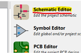- Po vytvoření projektu budete obvykle chtít nejdříve začít vytvořením schématu. Pro tyto účely slouží v pravé části KiCadu velké tlačítko s popisem Schematic editor. Klikněte na toto tlačítko.