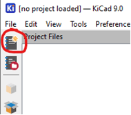 - V hlavním okně KiCadu by mělo být v levé nabídce tlačítko s ikonou dokumentu a žlutou hvězdičkou. Na toto tlačítko klikněte.