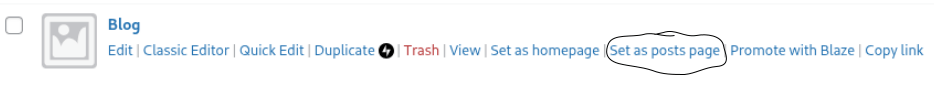 Pak jsme šli zase do „Pages“ a nastavili jsme ji jako „posts page“.